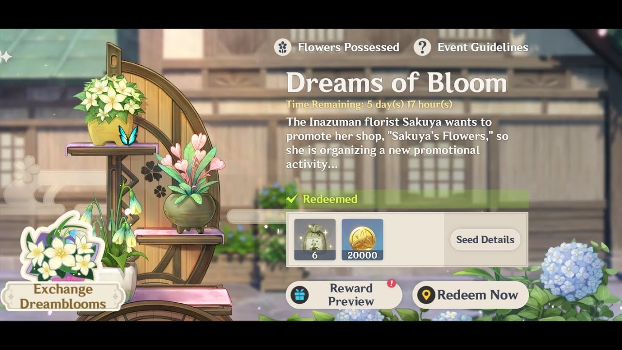 How to plant dream bloom genshin. Interior Designers heres a new Genshin Impact event you really dont want to miss. Remember that per day the number of daily exchanges is limited. You can plant your the seeds that you receive from Sakuya via gardening inside your Serenitea Pot.